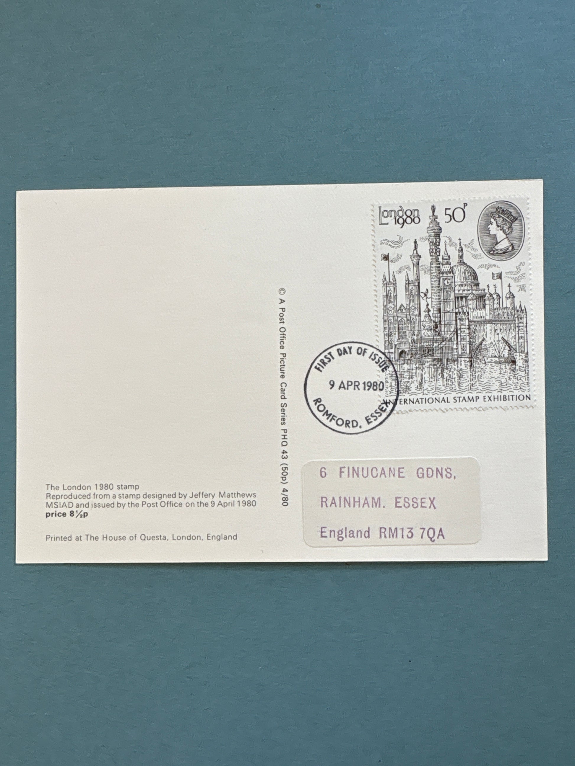 PHQ FDC - London 1980 International Stamp Exhibition PHQ Card with Matching Stamp on rear